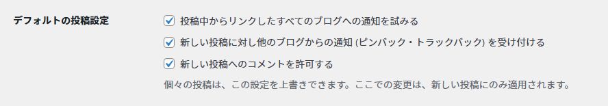 もしあなたが企業のコーポレートサイトや、通常のサービス紹介サイトを作ろうとしているなら、一番上の「新しい投稿へのコメントを許可」のチェックは外しておくことを強くおすすめします。